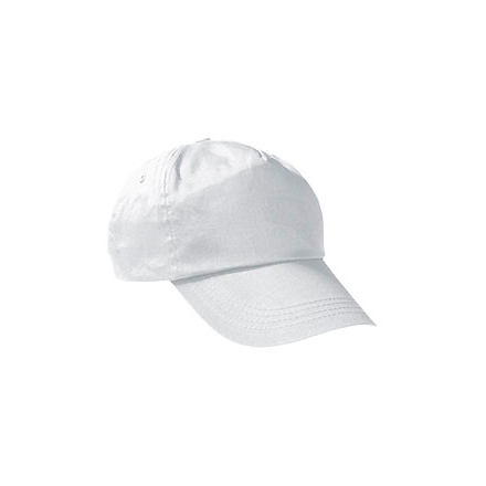 100% хлопок. 175 г/м2 саржевое плетение. 5 клиньев. Без лобового шва, подходит для печати. Изогнутый козырек. Размер регулируется с помощью застежки на липучке велькро. 2 вышитых отверстия. Съемное переднее усиление. 300 единиц в коробке. 50 штук в упаковке: 1 размер, 1 цвет.