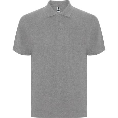 Футболка поло с короткими рукавами и карманом на левой стороне груди. Воротник и окантовка рукавов в рубчик 1 х 1 с объемным узором. Планка на 3 пуговицы. Усиленные закрытые швы горловины. *Отрывная этикетка.