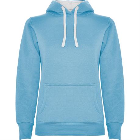 Приталенное женское Толстовка с двухцветным капюшоном с двойной ткани и контрастным шнурком для регулировки, закрытыми швами горловины и карманом-кенгуру. Манжеты и низ в рубчик 1 x 1 с эластаном. Манжет thumb slit — манжет рукава в рубчик со специальным
