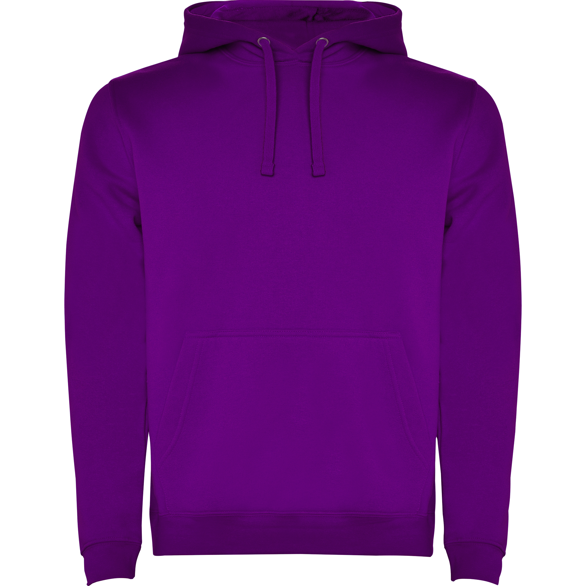 Однотонная или двухцветная толстовка с двухслойным капюшоном, регулируемым шнурком и карманом-кенгуру. Манжеты и нижний край выполнены из эластичной резинки 1x1.