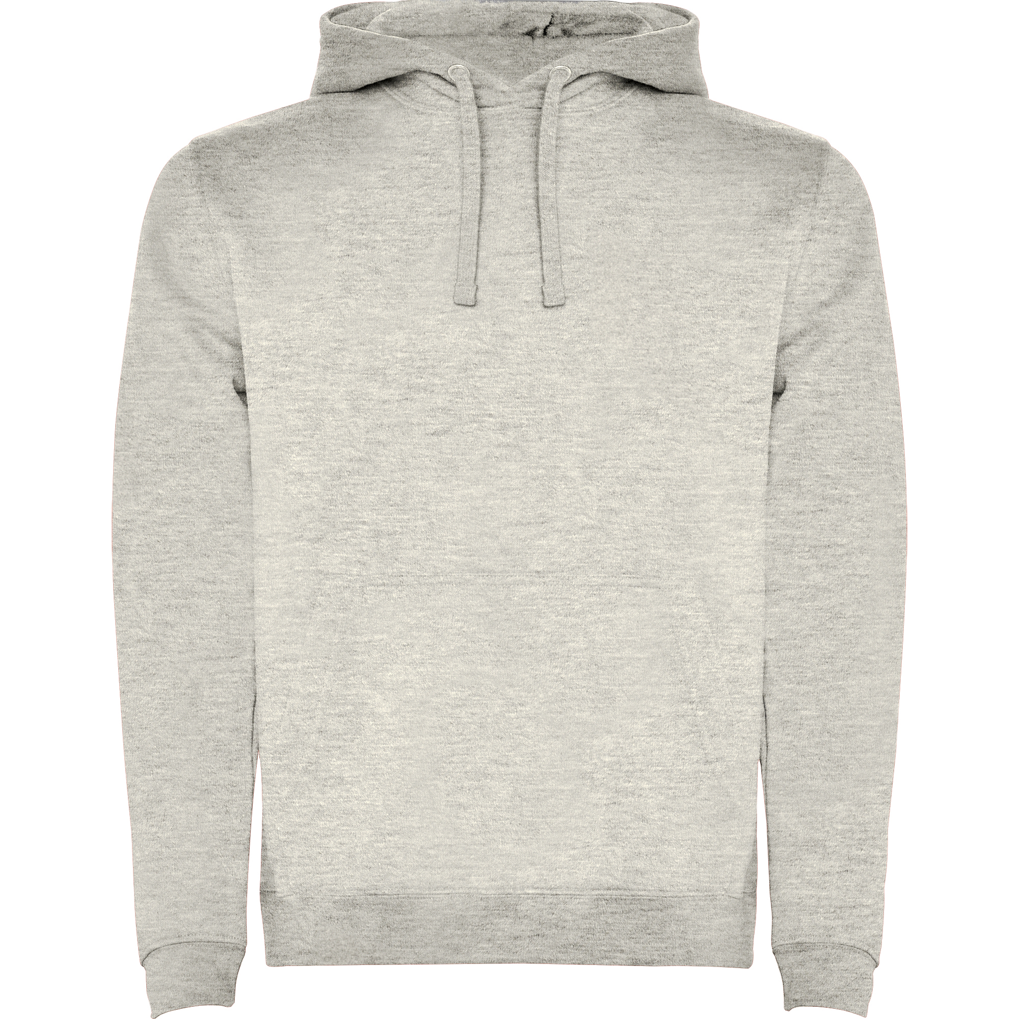 Однотонная или двухцветная толстовка с двухслойным капюшоном, регулируемым шнурком и карманом-кенгуру. Манжеты и нижний край выполнены из эластичной резинки 1x1.