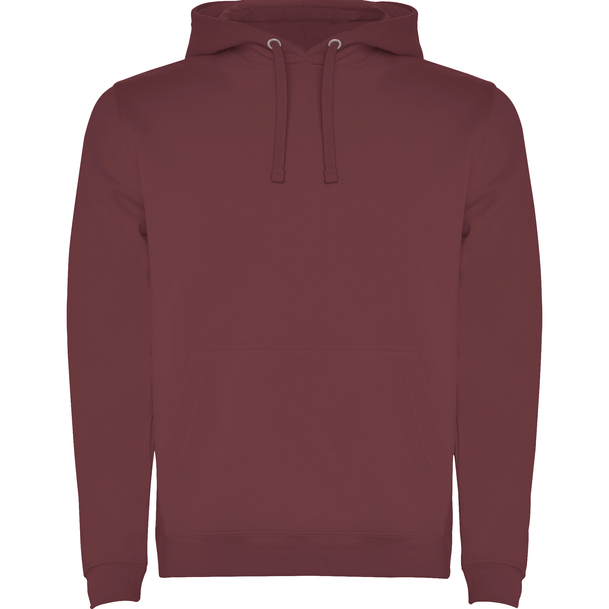 Однотонная или двухцветная толстовка с двухслойным капюшоном, регулируемым шнурком и карманом-кенгуру. Манжеты и нижний край выполнены из эластичной резинки 1x1.