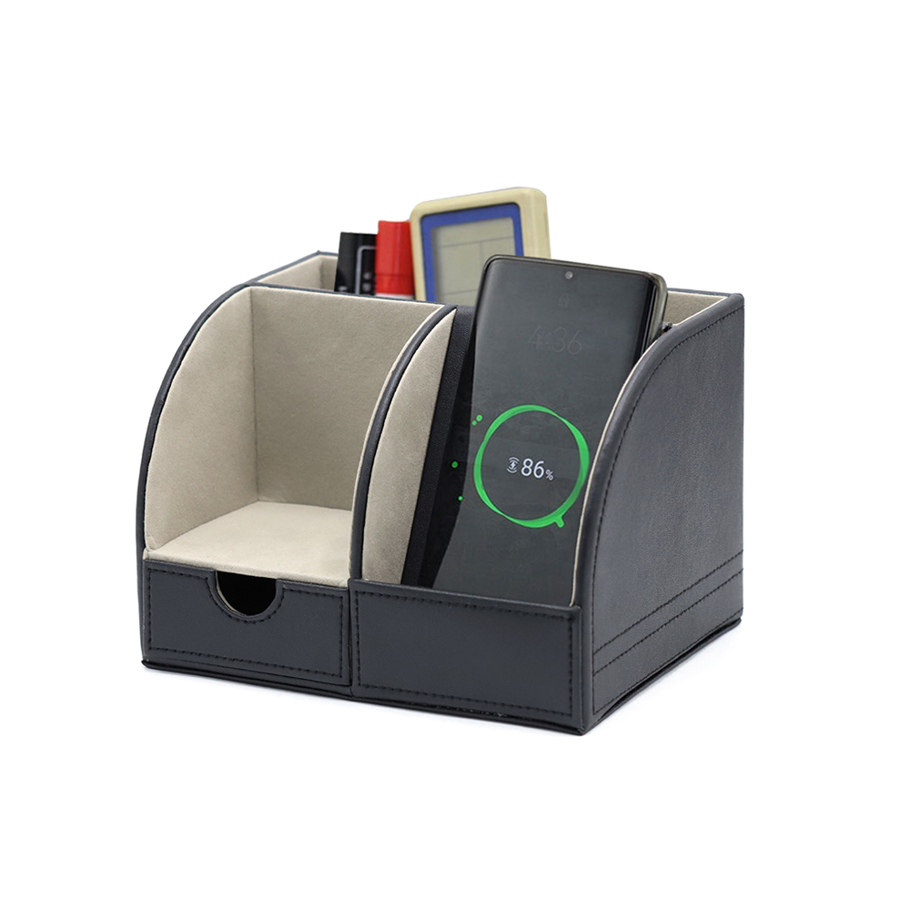 Органайзер “Форма” имеет встроенную беспроводную зарядку, что выгодно отличает его от аналогов. Данная модель имеет качественно покрытие из кожзама и много отделений для офисных мелочей. Вход: 5V-2A / 9V-1.67A. Выход: 7.5W/10W. В комплекте кабель USB и инструкция. Область зарядки смартфона поддерживает все Android/Ios устройства с функцией беспроводной зарядки. Для работы беспроводной зарядки необходимо подключать устройство к сети через адаптер.