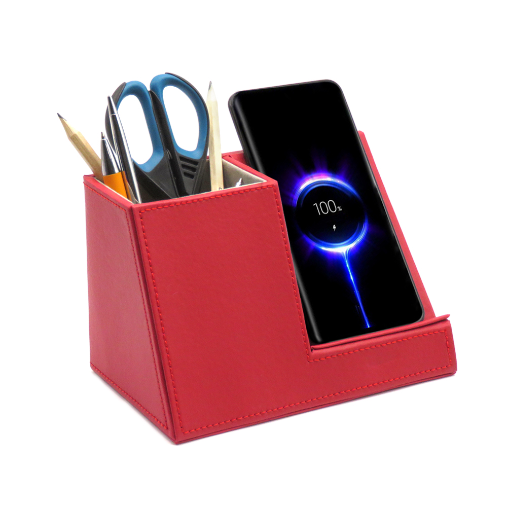 Настольный органайзер Ron c беспроводной зарядкой — это идеальный аксессуар для вашего рабочего стола! Этот органайзер позволит вам поддерживать порядок на столе и заряжать телефон с помощью беспроводной технологии. Аккумулятор мощностью 10W позволяет зарядить телефон в 2 раза быстрее по сравнению с другими зарядными устройствами. Цвет по PANTONE® (максимально приближен): 187C.Вход: 5V-2A / 9V-1.67A. Выход: 7.5W/10W. В комплекте кабель USB и инструкция. Область зарядки смартфона поддерживает все Android/Ios устройства с функцией беспроводной зарядки. Для работы беспроводной зарядки необходимо подключать устройство к сети через адаптер.