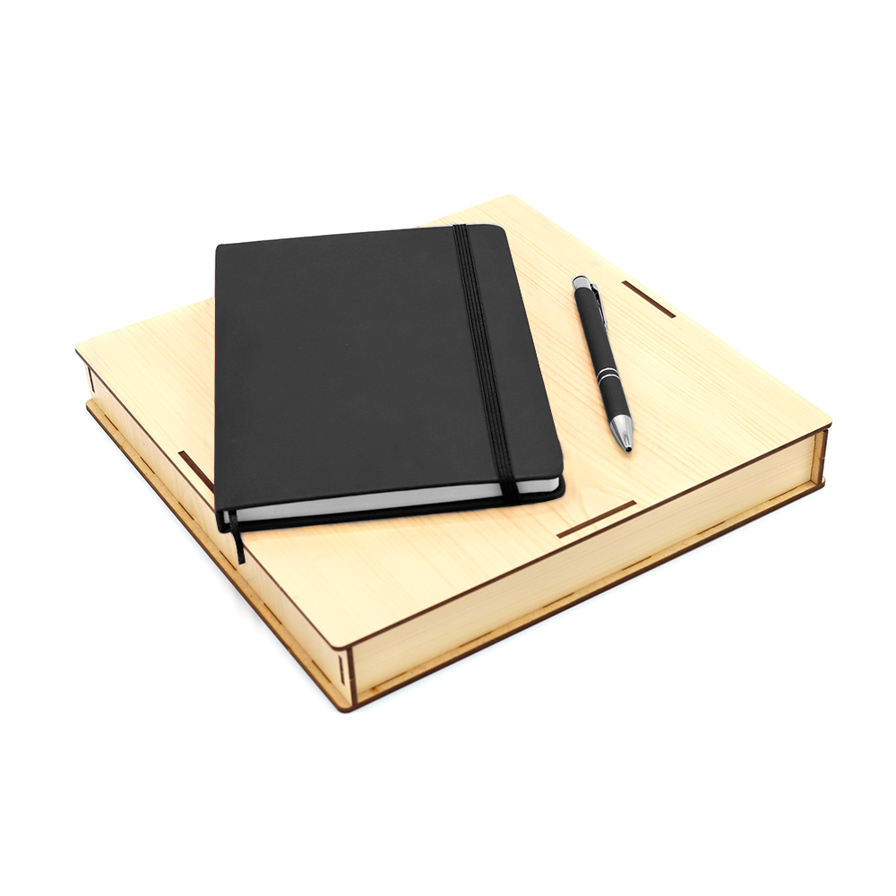 Оригинальный и стильный набор для письма, отличающийся утонченным стилем и совершенством деталей. Вам не придется думать над подарком - просто бери и дари! Упаковка из древесноволокнистной плиты высокой плотности (ХДФ/HDF) обеспечивает удобство погрузки и разгрузки, сохранность в пути. Состав набора: Упаковка из древесноволокнистной плиты - 1 шт. (Артикул: 53300) Ложемент 24,1х24,1х2 см (блокнот А5 + ручка) - 1 шт. (Артикул 53058.1) Блокнот A5 "Monte" с линованными страницами - 1 шт. (Артикул: 51000.02) Ручка металлическая Molly - 1 шт. (Артикул: 1033.02)