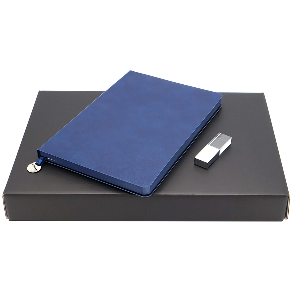 Успейте запечатлеть всё интересное с набором "Заметь и запомни"!. Этот стильный комплект включает в себя ежедневник и удобную флешку, упакованные в элегантную коробку. Он станет идеальным спутником для креативных людей, стремящихся сохранить свои идеи и вдохновение. Пусть каждая страница и каждый файл станут шагом к вашим мечтам, а этот набор — вашим личным проводником в мир бесконечных возможностей! Состав набора: 1. Ежедневник A5 недатированный Impero в мягком переплёте, темно-синий (артикул 51028.15) - 1 шт. 2. Флешка Moon 16 Гб, синий (артикул 3009.03) - 1 шт. 3. Коробка Warrant с матовой поверхностью, чёрный (артикул RUS5052.19) - 1 шт.