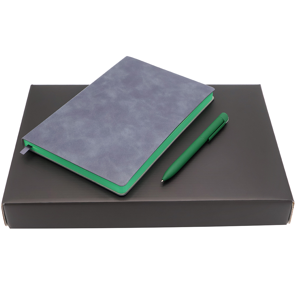 Подарочный набор МОМЕНТЫ – это гармоничное сочетание стиля и функциональности, созданное для тех, кто ценит каждый день и стремится делать его особенным. В изящной коробке с ложементом бережно расположены ежедневник и стильная ручка — чтобы каждый день вы могли остановиться на секунду, вдохновиться и сохранить самые тёплые и важные моменты жизни. Состав набора: 1.Ежедневник A5 недатированный Carisma в мягком переплёте, зеленый (артикул 51030.04) - 1 шт. 2. Ручка металлическая Espada софт-тач, темно-зеленый (артикул 1053.24) - 1 шт. 3. Коробка Warrant с матовой поверхностью, чёрный (артикул RUS5052.19) - 1 шт.