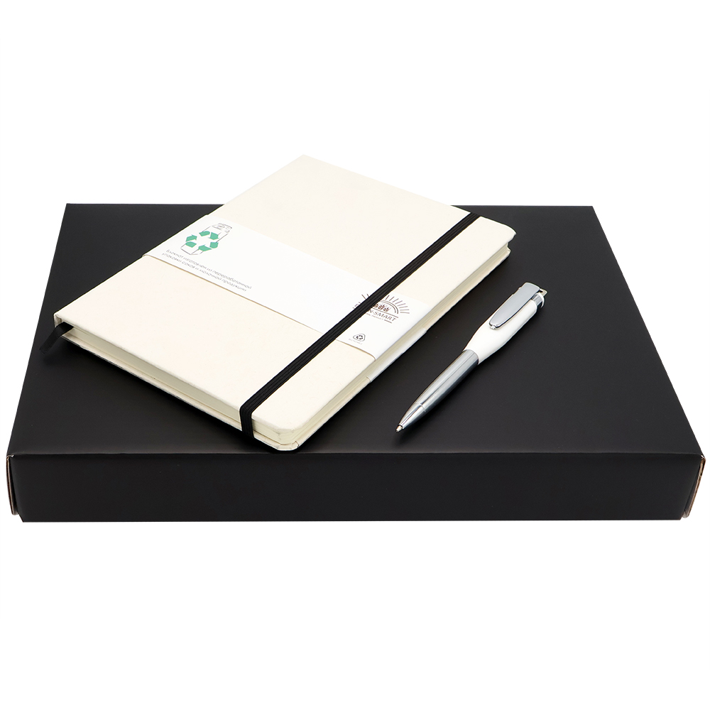 "Fantazy stream" — Подарочный набор в элегантной цветной коробке черного цвета с конструкцией крышка-дно. Внутри расположен ложемент, специально разработанный для надежного и аккуратного размещения всех элементов набора. В набор входят стильный ежедневник с плотной обложкой (арт.51013.02) и металлическая ручка с флэшкой на 64GB (арт1043.01), идеально дополняющая комплект. Ежедневник имеет высококачественную обложку и удобный формат для записи важных дел и заметок, а ручка c флешкjq сочетает в себе элегантный дизайн и практичную функцию хранения цифровой информации. Такой комплект станет идеальным подарком для деловых людей, ценящих сочетание классики и современных технологий.
