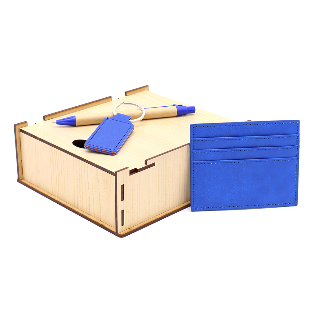Оригинальный и стильный набор, отличающийся утонченным стилем и совершенством деталей. Вам не придется думать над подарком - просто бери и дари! Упаковка из древесноволокнистной плиты высокой плотности (ХДФ/HDF) обеспечивает удобство погрузки и разгрузки, сохранность в пути. Состав набора: Подарочная коробка ламинированная из HDF 17,5*15,5*6,5 см - 1 шт. (Артикул: 53302) Ложемент см (ручка + Держатель банковских карт + Брелок) - 1 шт. (Артикул 53302.4) Держатель банковских карт Versal - 1 шт. (Артикул: 37005.03) Брелок Hors - 1 шт. (Артикул: 12019.03) Шариковая ручка Natural Bio, синий - 1 шт. (Артикул: 1020.03)