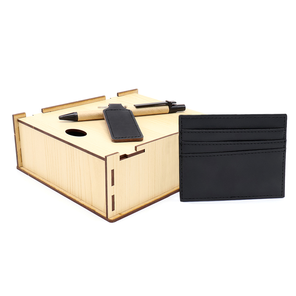 Оригинальный и стильный набор, отличающийся утонченным стилем и совершенством деталей. Вам не придется думать над подарком - просто бери и дари! Упаковка из древесноволокнистной плиты высокой плотности (ХДФ/HDF) обеспечивает удобство погрузки и разгрузки, сохранность в пути. Состав набора: Подарочная коробка ламинированная из HDF 17,5*15,5*6,5 см - 1 шт. (Артикул: 53302) Ложемент см (ручка + Держатель банковских карт + Брелок) - 1 шт. (Артикул 53302.4) Держатель банковских карт Versal,черный - 1 шт. (Артикул: 37005.02) Брелок Hors, черный - 1 шт. (Артикул: 12019.02) Шариковая ручка Natural Bio, черный - 1 шт. (Артикул: 1020.02)