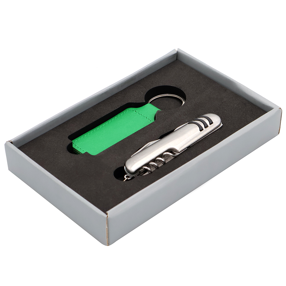 Подарочный набор «Элемент» - функциональность в деталях. • Нож — для дел. • Брелок — для ключей. • Стиль — для вас. Три элемента вашей ежедневной готовности. Упаковано в элегантную коробку — отличный подарок для решения любых задач. Состав набора: 1. Нож многофункциональный Дрезден, серебристый (артикул 39013.09) - 1 шт. 2. Брелок Hors, зеленый (артикул 12019.04) - 1 шт. 3. Коробка Protect матовой поверхностью, серый (артикул RUS5051.19) - 1 шт.