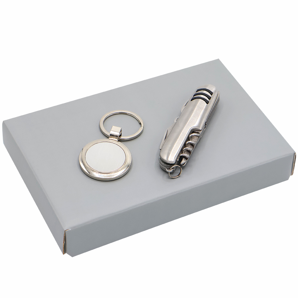 Подарочный набор "Базис" — это основа для уверенного старта в любом начинании. Многофункциональный нож, как верный друг, готов прийти на помощь в самых неожиданных ситуациях: от пикника на природе до небольшой починки в доме. Стильный брелок добавляет изюминку набору и служит напоминанием о том, что каждая задача может быть решена с лёгкостью и креативом. Упакованные в элегантную коробку, эти аксессуары станут отличным подарком для тех, кто ценит практичность и стиль. Создайте свой собственный базис для новых приключений и свершений! Состав набора: 1. Нож многофункциональный Дрезден, серебристый (артикул 39013.09) - 1 шт. 2. Брелок Ронда металлический, серебристый (артикул - 12004.09) - 1 шт. 3. Коробка Protect матовой поверхностью, серый (артикул RUS5051.19) - 1 шт.