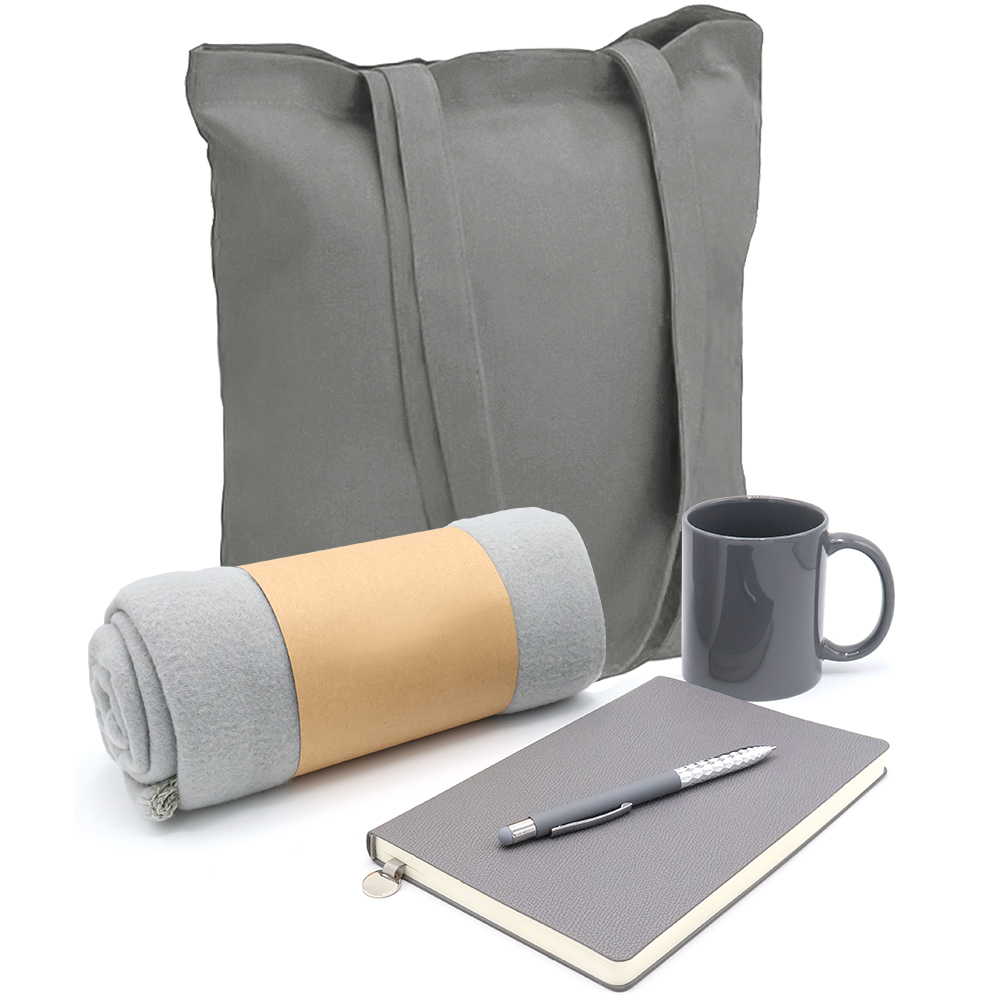 Подарочный набор "Тепло и вдохновение" — это уютное дополнение сумбурным будням. Удобная хозяйственная сумка готова сопровождать вас в каждодневных приключениях, а мягкий плед окутывает теплом, словно объятие близкого человека. Ручка поможет запечатлеть ваши мысли на страницах ежедневника, а кружка станет верным спутником в моменты уединения с книгой или горячим напитком. Подарите себе или близким частичку домашнего уюта и вдохновения, чтобы каждый день наполнялся теплом и радостью. Состав набора: 1. Cумка хозяйственная Bagsy Super 220 г/м2, тёмно-серый (артикул 25004.20) - 1 шт. 2. Плед PATIO, серый (артикул 16008.10) - 1 шт. 3. Блокнот A5 Officer в мягком переплёте с металлической биркой, серый (артикул 51010.10) - 1 шт. 4. Ручка металлическая Party софт-тач, серый (артикул 1055.20). 5. Кружка Tamila, серый (артикул 6138.10) - 1 шт.
