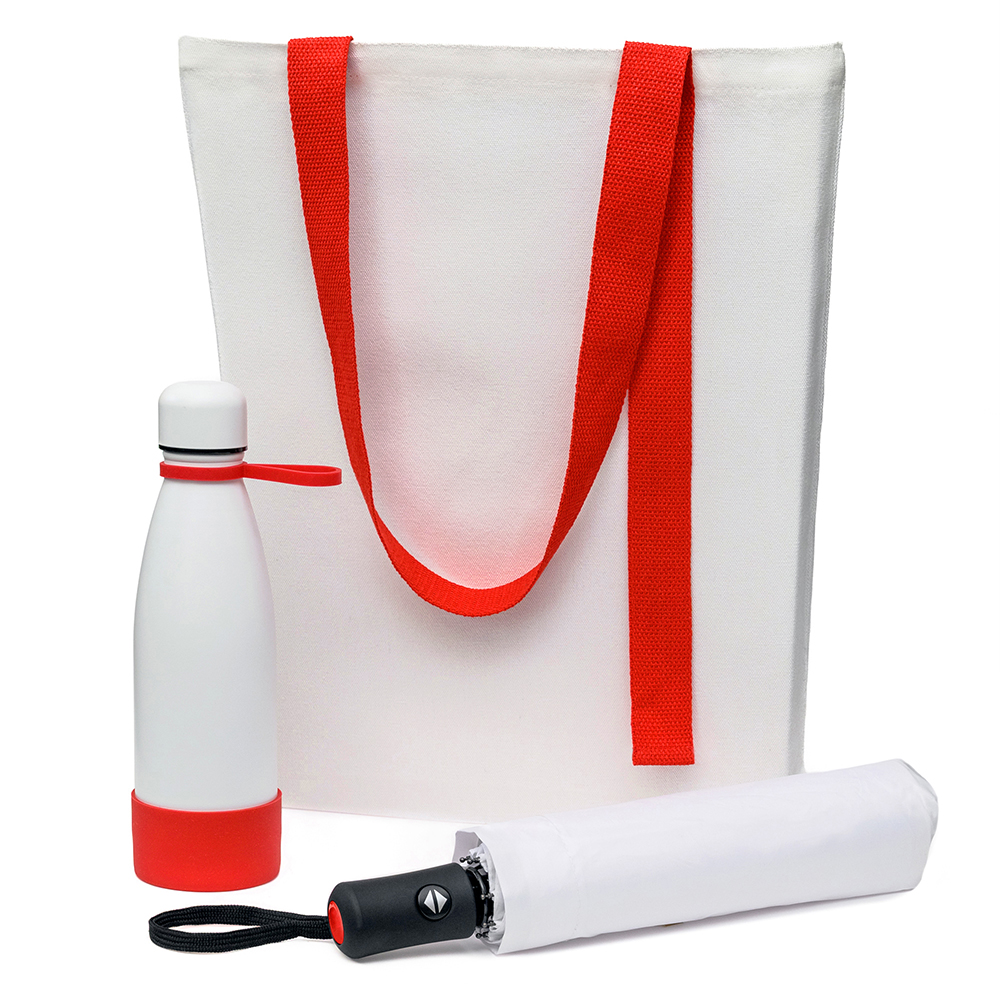 Подарочный набор «Rain & Warm» — идеальное сочетание стиля и функциональности! В него входят элегантный шоппер, удобная термокружка и надежный зонт, которые помогут вам быть готовым ко всему. Доступен в трёх ярких цветах: классическом черном, энергичном красном и глубоком синем — каждый найдет идеальный вариант для себя! Этот набор станет отличным подарком для себя или близких, сочетая практичность и стиль. «Rain & Warm» — это не просто аксессуары, а ваш верный спутник в любых погодных условиях! Состав набора: 1. Сумка для покупок TAHOMA 270 г/м² (артикул 25009.02, 25009.03, 25009.05) - 1 шт. 2. Термобутылка герметичная вакуумная Olivia (артикул 5050.01) - 1 шт. 3. Кольцо-держатель силиконовое для термобутылки Olivia (артикул 5050K.02, 5050K.03, 5050K.05) - 1 шт. 4. Манжета силиконовая для термобутылки Olivia (артикул 5050M.02, 5050M.03, 5050M.05) - 1 шт. 5. Автоматический противоштормовой зонт Vortex, белый (артикул 8004.01) - 1 шт. 6. Накладка силиконовая для зонта Vortex (артикул 8004D.01, 8004D.03, 8004D.05) - 1 шт.