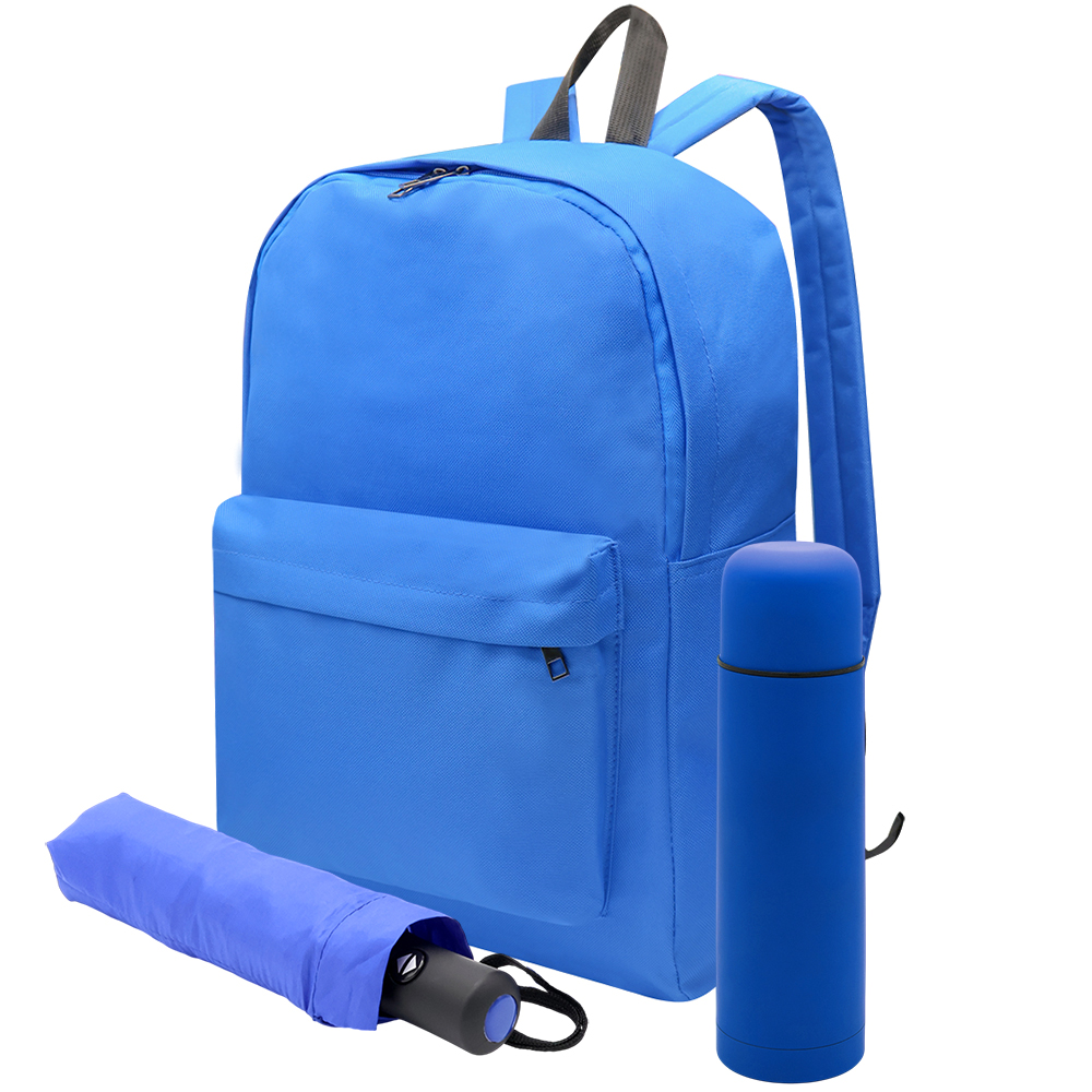 Набор CAPYBARA создан для ценителей уютного стиля, практичности и милоты. Он подарит позитивные эмоции и сделает немного ярче даже самый хмурый день. Капибара — не просто животное, это состояние души. Символ спокойствия, принятия и умения наслаждаться текущим моментом. Мы создали этот набор, чтобы вы могли принести кусочек этой безмятежности в свою жизнь или сделать уникальный подарок близкому человеку. Состав набора: 1. Рюкзак BEAVIS синий (артикул 4045.03) - 1 шт. 2. Автоматический противоштормовой зонт Vortex синий (артикул 8004.03) - 1 шт. 3. Накладка силиконовая для зонта Vortex синяя (артикул 8004D.03) - 1 шт. 4. Термос Picnic Soft синий (артикул 5006.03 - 1 шт.) 5. Пакет из бумаги Arrange бежевый (артикул RUS7500.19) - 1 шт.