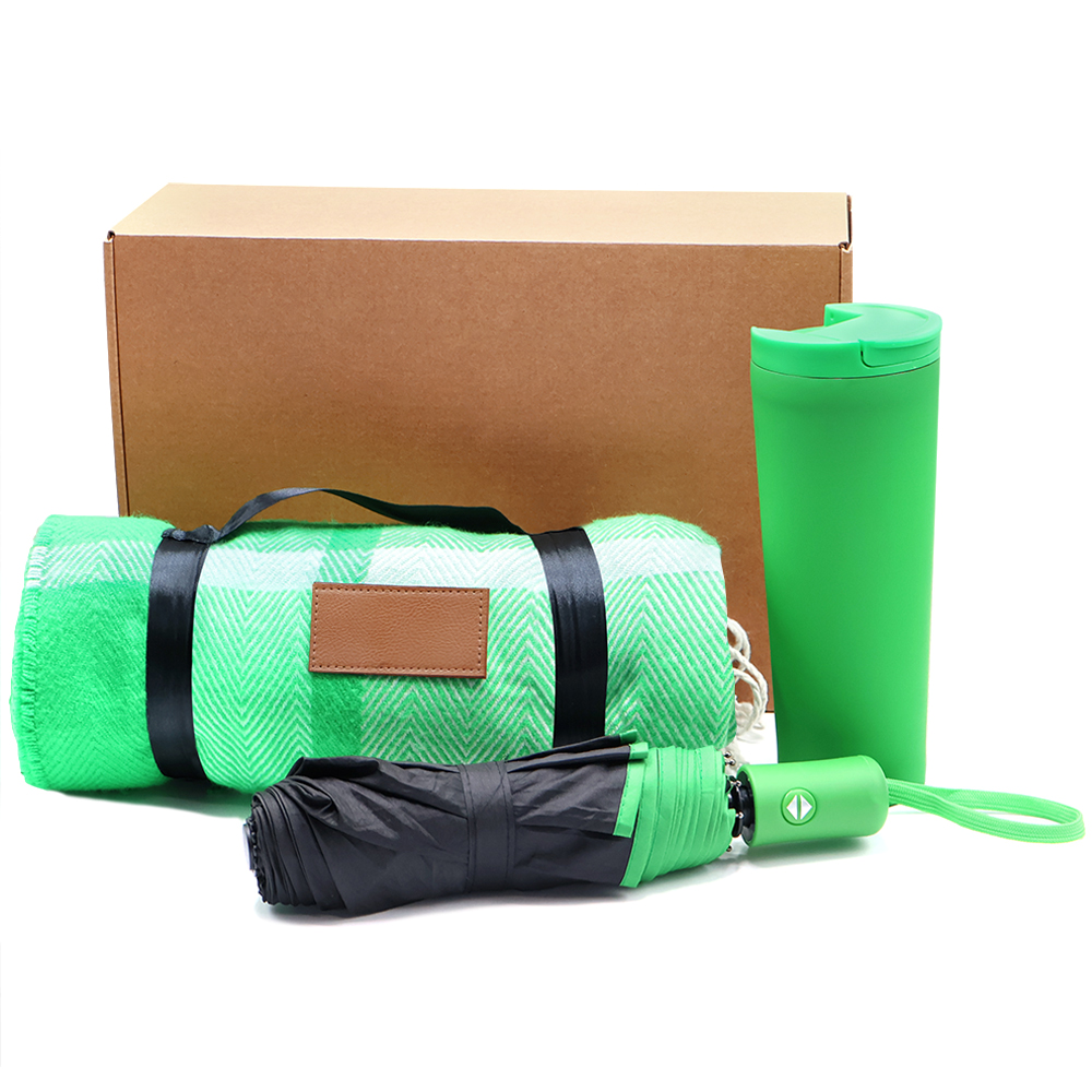AUTUMN MOOD — воплощение уюта и гармонии вдохновленное самыми прекрасными осенними моментами. Почувствуйте магию осени с этим набором. Теплый плед, горячий чай и прогулка в дождливый день. В нём собрано всё, чтобы замедлить время, согреть и напомнить о самых простых и важных радостях. Остановите мгновение, чтобы почувствовать настроение осени . Состав набора: 1. Плед акриловый Glama зелёный (артикул 16005.04) - 1 шт. 2. Противоштормовой автоматический зонт Line зелёный (артикул 8015.04) - 1 шт. 3. Термокружка Carroll софт-тач зелёная (артикул 5022.04) - 1 шт. 4. Коробка Humble бежевая (артикул RUS5054.19) - 1 шт. 5. Наполнитель - стружка бумажная, бежевый (артикул: 62000.13) - 1 шт.