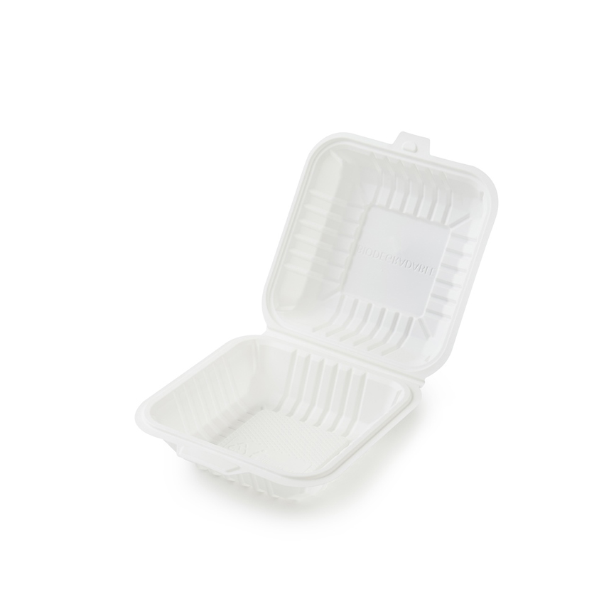 Когда вы отправляетесь на пикник или собираетесь в дальнюю автомобильную поездку, незаменимым атрибутом становятся одноразовые столовые приборы, стаканчики, тарелки и контейнеры. После использования, их можно утилизировать собственными силами без вреда для окружающей среды. Кукурузный крахмал – основное составляющее посуды. Он имеет все необходимые свойства, а также абсолютно безопасен для здоровья человека. Его используют и в пищевой, и в медицинской, и в текстильной промышленностях. Стойкость к разным температурным режимам – одно из важных свойств биоразлагаемой посуды. Такая посуда выдерживает как низкие, так и высокие температуры. Ее можно использовать в микроволновой печи и морозильной камере. Безопасность и отсутствие вредных соединений – основное преимущество посуды из крахмала. Биоразлагаемая посуда не содержит пагубных веществ, не засоряет окружающую среду. Экологичная упаковка для продуктов, которая не выделяет в пищу примесей и запахов даже при нагревании. Контейнер для гамбургера из кукурузного крахмала (6 дюймов / 15 см).