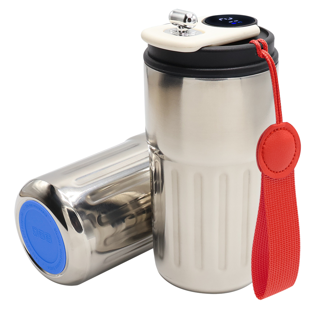 Термокружка Ashly с дисплеем выполнена из пищевой нержавеющей стали. Объем 400 мл. Имеет двойные стенки с вакуумной изоляцией, крышка изготовлена из пищевого безопасного для человека пластика. Особенностью термокружки Ashly является наличие сенсорного индикатора температуры, расположенного в крышке. Чтобы узнать температуру напитка внутри кружки, достаточно прикоснуться к поверхности крышки. Помимо этого, термокружка Ashly очень удобна в использовании. Просто нажмите на клапан в направлении дисплея, чтобы открыть верхнюю часть крышки и насладиться любимым напитком. Элегантный дизайн, удобство и функциональность - вот что делает термокружку Ashly незаменимым аксессуаром для всех любителей горячих и холодных напитков. В комплекте: термокружка, шнурок, силиконовая накладка и фирменная коробка. Надежная крышка - качественные и безопасные материалы - двойные стенки из нержавеющей стали - сенсорный ЖК-дисплей - информация о температуре жидкости -отличные теплоизоляционные свойства - эргономичный дизайн - удобная форма! Термокружка подходит для большинства автомобильных подстаканников. Цвет шнурка, максимально близкий к пантону 186С. Цвет накладки, максимально близкий к пантону 285С