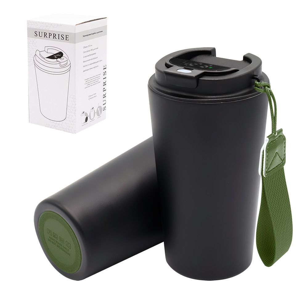 Термокружка Surprise To Go с дисплеем выполнена из пищевой нержавеющей стали. Имеет двойные стенки с вакуумной изоляцией, а крышка изготовлена из пищевого безопасного для человека пластика. Термокружка Surprise To Go не только сохраняет ваши напитки горячими, но и показывает температуру напитка! Уникальная особенность данной термокружки – наличие сенсорного индикатора температуры, расположенного в крышке. Чтобы узнать температуру напитка внутри кружки, достаточно прикоснуться к поверхности крышки. Работает от 1 батарейки типа CR2032 (в комплекте), которую в последующем можно самостоятельно заменить. - качественные и безопасные материалы - двойные стенки из нержавеющей стали - сенсорный ЖК-дисплей - информация о температуре жидкости - батарею можно заменить самостоятельно -отличные теплоизоляционные свойства - эргономичный дизайн - удобная форма В комплект уже входит силиконовая накладка и шнурок. Насладись своим кофе в компании термокружки Surprise To Go!