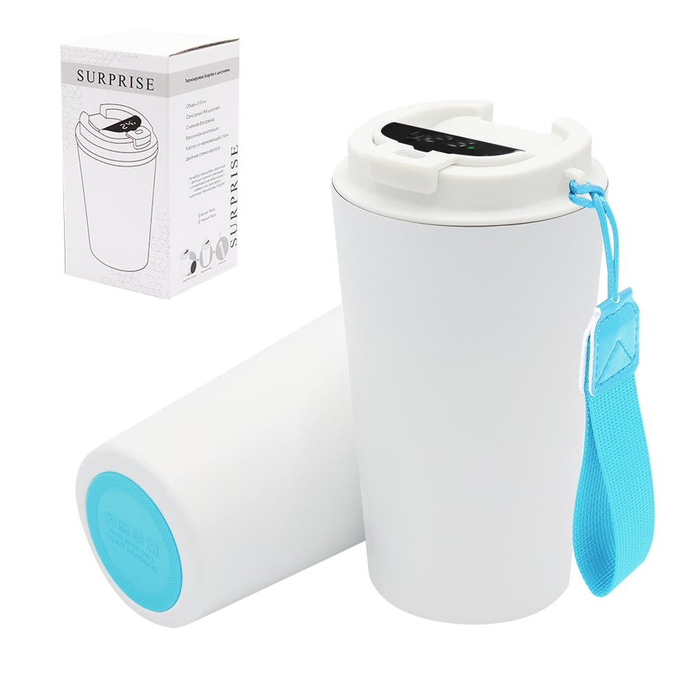 Термокружка Surprise To Go с дисплеем выполнена из пищевой нержавеющей стали. Имеет двойные стенки с вакуумной изоляцией, а крышка изготовлена из пищевого безопасного для человека пластика. Термокружка Surprise To Go не только сохраняет ваши напитки горячими, но и показывает температуру напитка! Уникальная особенность данной термокружки – наличие сенсорного индикатора температуры, расположенного в крышке. Чтобы узнать температуру напитка внутри кружки, достаточно прикоснуться к поверхности крышки. Работает от 1 батарейки типа CR2032 (в комплекте), которую в последующем можно самостоятельно заменить. - качественные и безопасные материалы - двойные стенки из нержавеющей стали - сенсорный ЖК-дисплей - информация о температуре жидкости - батарею можно заменить самостоятельно -отличные теплоизоляционные свойства - эргономичный дизайн - удобная форма В комплект уже входит силиконовая накладка и шнурок. Насладись своим кофе в компании термокружки Surprise To Go!