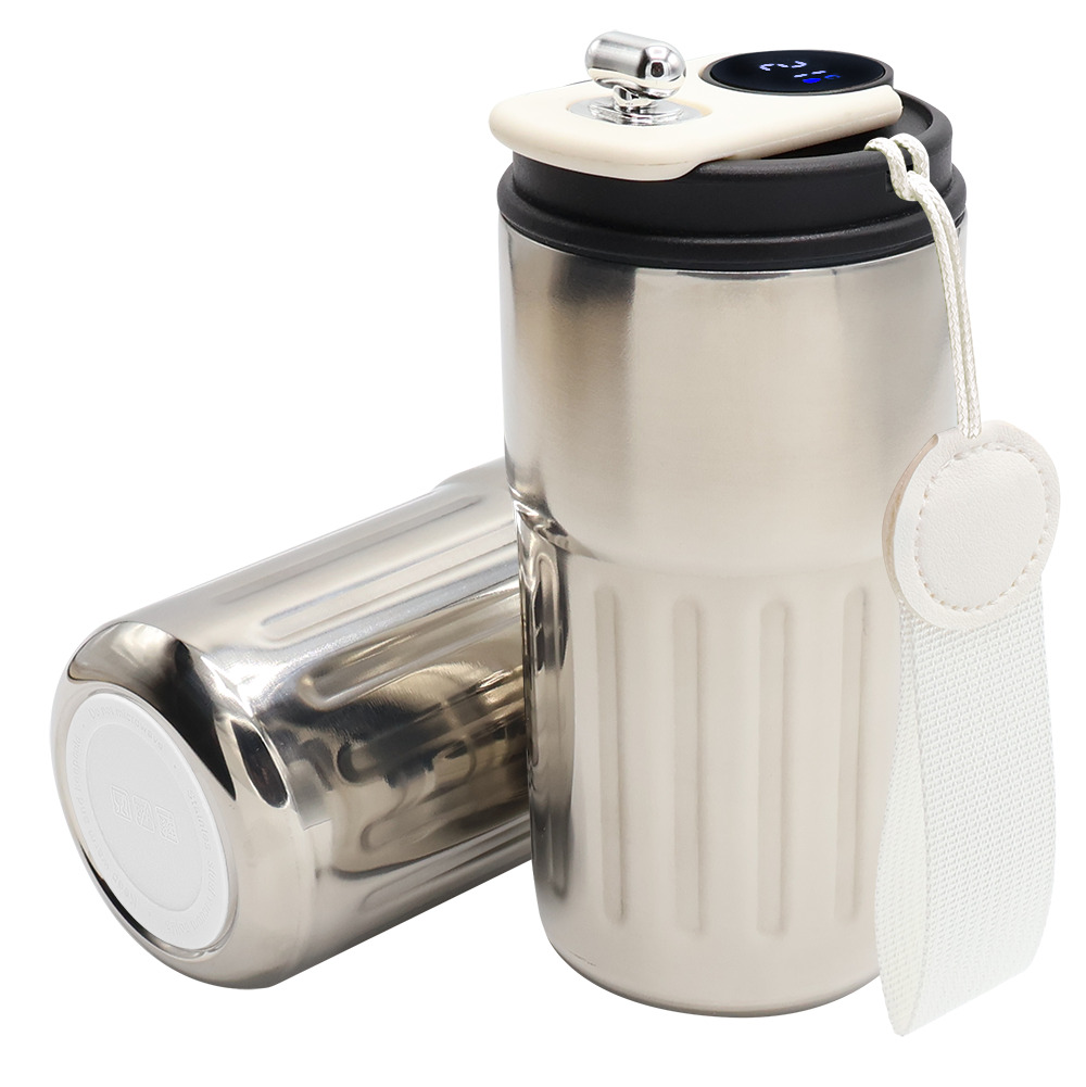 Термокружка Ashly с дисплеем выполнена из пищевой нержавеющей стали. Объем 400 мл. Имеет двойные стенки с вакуумной изоляцией, крышка изготовлена из пищевого безопасного для человека пластика. Особенностью термокружки Ashly является наличие сенсорного индикатора температуры, расположенного в крышке. Чтобы узнать температуру напитка внутри кружки, достаточно прикоснуться к поверхности крышки. Помимо этого, термокружка Ashly очень удобна в использовании. Просто нажмите на клапан в направлении дисплея, чтобы открыть верхнюю часть крышки и насладиться любимым напитком. Элегантный дизайн, удобство и функциональность - вот что делает термокружку Ashly незаменимым аксессуаром для всех любителей горячих и холодных напитков. В комплекте: термокружка, шнурок, силиконовая накладка и фирменная коробка. Надежная крышка - качественные и безопасные материалы - двойные стенки из нержавеющей стали - сенсорный ЖК-дисплей - информация о температуре жидкости -отличные теплоизоляционные свойства - эргономичный дизайн - удобная форма! Термокружка подходит для большинства автомобильных подстаканников.