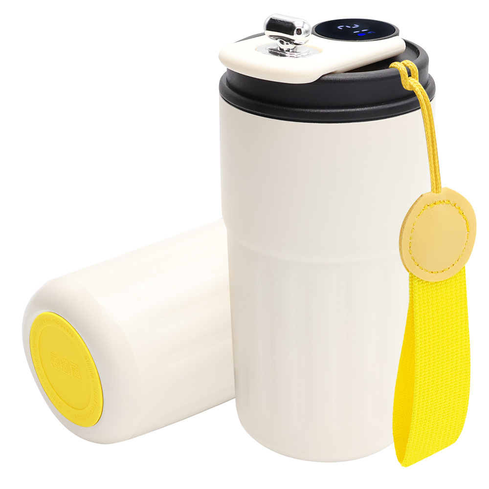 Термокружка Ashly с дисплеем выполнена из пищевой нержавеющей стали. Объем 400 мл. Имеет двойные стенки с вакуумной изоляцией, крышка изготовлена из пищевого безопасного для человека пластика. Особенностью термокружки Ashly является наличие сенсорного индикатора температуры, расположенного в крышке. Чтобы узнать температуру напитка внутри кружки, достаточно прикоснуться к поверхности крышки. Помимо этого, термокружка Ashly очень удобна в использовании. Просто нажмите на клапан в направлении дисплея, чтобы открыть верхнюю часть крышки и насладиться любимым напитком. Элегантный дизайн, удобство и функциональность - вот что делает термокружку Ashly незаменимым аксессуаром для всех любителей горячих и холодных напитков. В комплекте: шнурок, силиконовая накладка и фирменная коробка. Надежная крышка - качественные и безопасные материалы - двойные стенки из нержавеющей стали - сенсорный ЖК-дисплей - информация о температуре жидкости -отличные теплоизоляционные свойства - эргономичный дизайн - удобная форма! Термокружка подходит для большинства автомобильных подстаканников. Жёлтый цвет, максимально близкий к пантону 108С