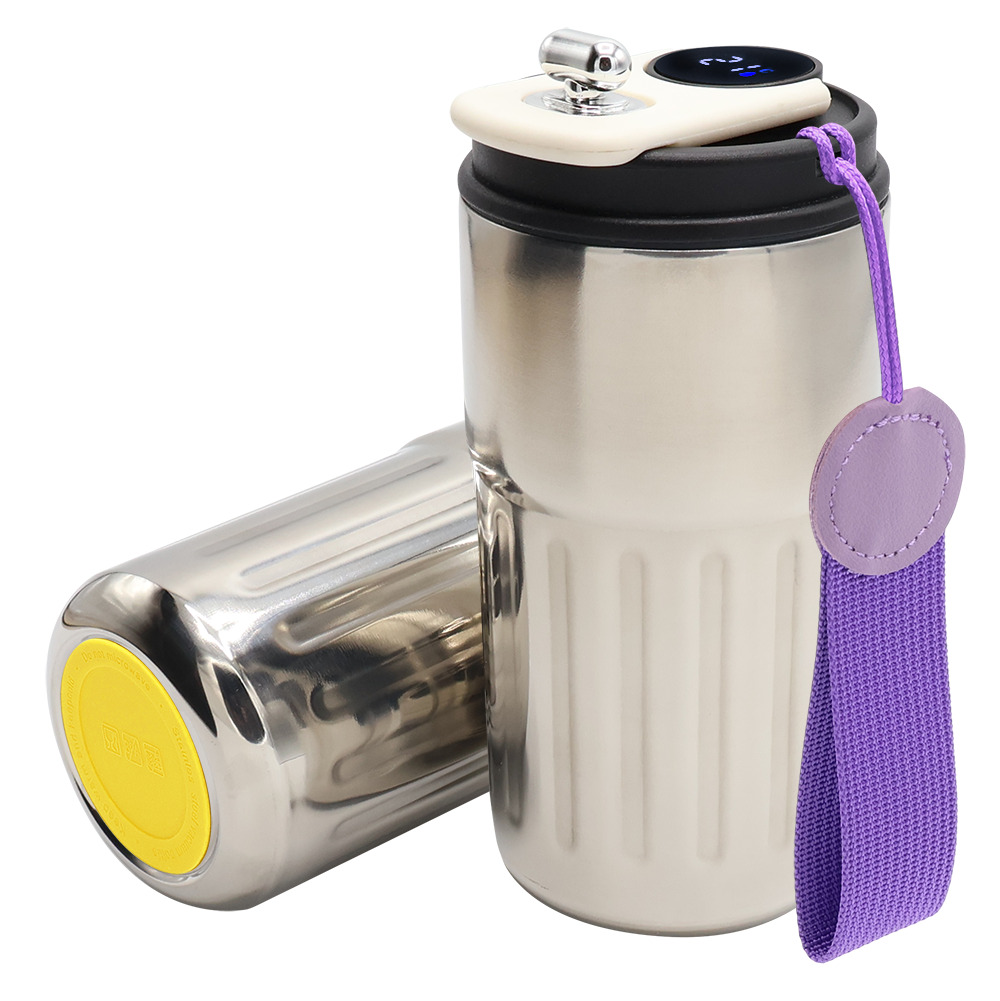 Термокружка Ashly с дисплеем выполнена из пищевой нержавеющей стали. Объем 400 мл. Имеет двойные стенки с вакуумной изоляцией, крышка изготовлена из пищевого безопасного для человека пластика. Особенностью термокружки Ashly является наличие сенсорного индикатора температуры, расположенного в крышке. Чтобы узнать температуру напитка внутри кружки, достаточно прикоснуться к поверхности крышки. Помимо этого, термокружка Ashly очень удобна в использовании. Просто нажмите на клапан в направлении дисплея, чтобы открыть верхнюю часть крышки и насладиться любимым напитком. Элегантный дизайн, удобство и функциональность - вот что делает термокружку Ashly незаменимым аксессуаром для всех любителей горячих и холодных напитков. В комплекте: термокружка, шнурок, силиконовая накладка и фирменная коробка. Надежная крышка - качественные и безопасные материалы - двойные стенки из нержавеющей стали - сенсорный ЖК-дисплей - информация о температуре жидкости -отличные теплоизоляционные свойства - эргономичный дизайн - удобная форма! Термокружка подходит для большинства автомобильных подстаканников. Цвет шнурка, максимально близкий к пантону 2077С. Цвет шнурка, максимально близкий к пантону 2077С. Цвет накладки, максимально близкий к пантону 108C