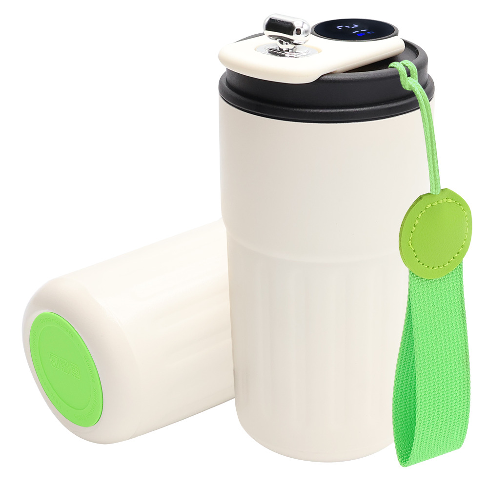 Термокружка Ashly с дисплеем выполнена из пищевой нержавеющей стали. Объем 400 мл. Имеет двойные стенки с вакуумной изоляцией, крышка изготовлена из пищевого безопасного для человека пластика. Особенностью термокружки Ashly является наличие сенсорного индикатора температуры, расположенного в крышке. Чтобы узнать температуру напитка внутри кружки, достаточно прикоснуться к поверхности крышки. Помимо этого, термокружка Ashly очень удобна в использовании. Просто нажмите на клапан в направлении дисплея, чтобы открыть верхнюю часть крышки и насладиться любимым напитком. Элегантный дизайн, удобство и функциональность - вот что делает термокружку Ashly незаменимым аксессуаром для всех любителей горячих и холодных напитков. В комплекте: шнурок, силиконовая накладка и фирменная коробка. Надежная крышка - качественные и безопасные материалы - двойные стенки из нержавеющей стали - сенсорный ЖК-дисплей - информация о температуре жидкости -отличные теплоизоляционные свойства - эргономичный дизайн - удобная форма! Термокружка подходит для большинства автомобильных подстаканников. Светло-зелёный цвет, максимально близкий к пантону 7487С