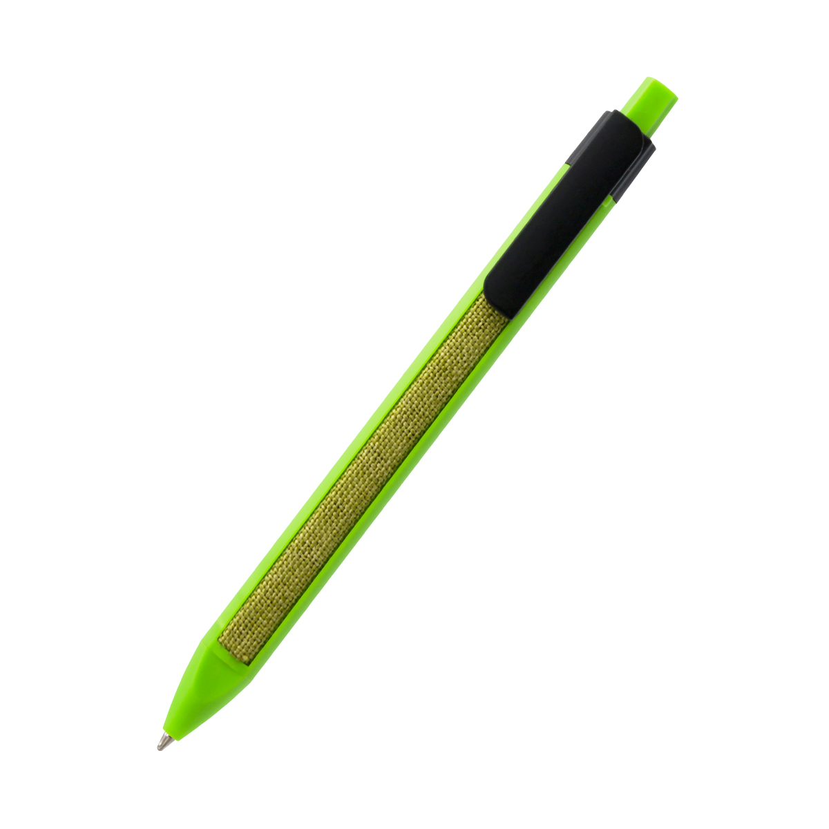 Пластиковая ручка с текстильной вставкой. Абсолютная новинка в мире ручек. Толщина пишущего узла 1 мм, длина письма рассчитана на 700 м. Цвет по PANTONE® (максимально приближен): 7488 C (корпус).