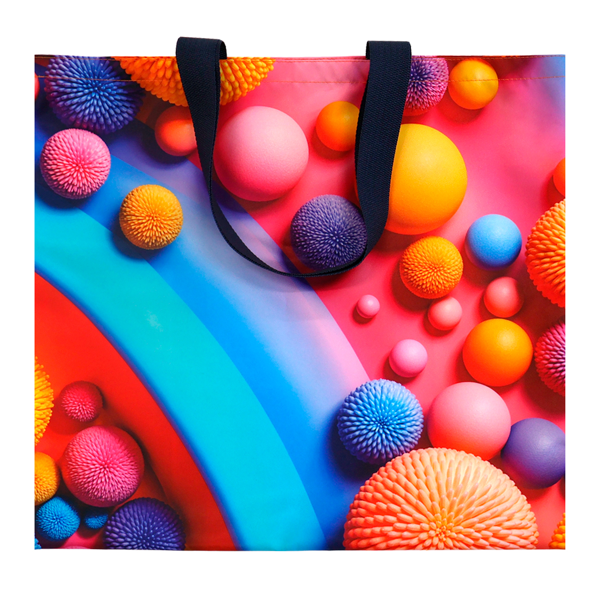 Сумка для покупок Слинг с полноцветной печатью. ✨ Стандартный шоппер с короткими ручками. Полноцветная печать по всей поверхности от шва до шва в соответствии с брендбуком клиента (любой оттенок по CMYK: логотипы, надписи и самые разнообразные принты). Без подкладки внутри. Размер: 45 х 40см. Размер ручек: 50 х 3см (пошиты из ременной ленты стандартной цветовой палитры). Материал: ткань Промо. Плотность: 245г/м². ✨ Ткань Промо - это 100% полиэфирное полотно саржевого переплетения с антистатической пропиткой. Ткань плотная, очень крепкая, хорошо держит форму.