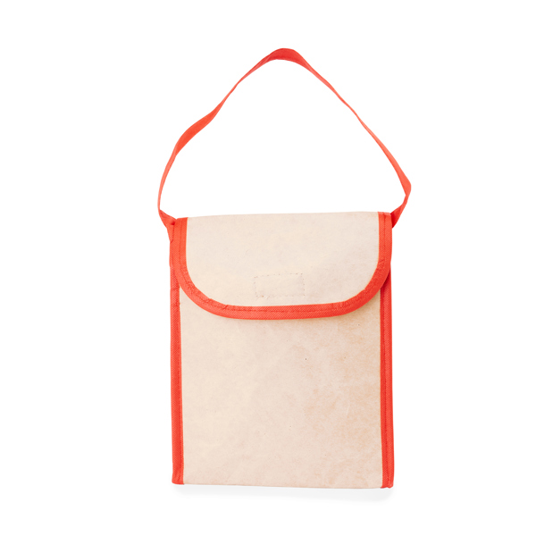 Сумка-холодильник из ламинированной бумаги с алюминиевой изотермической подкладкой и 2 мм изоляционной пеной. Ручка 60 см и клапан с застежкой-липучкой. Сумка и ручка имеют отделку соответствующего цвета.