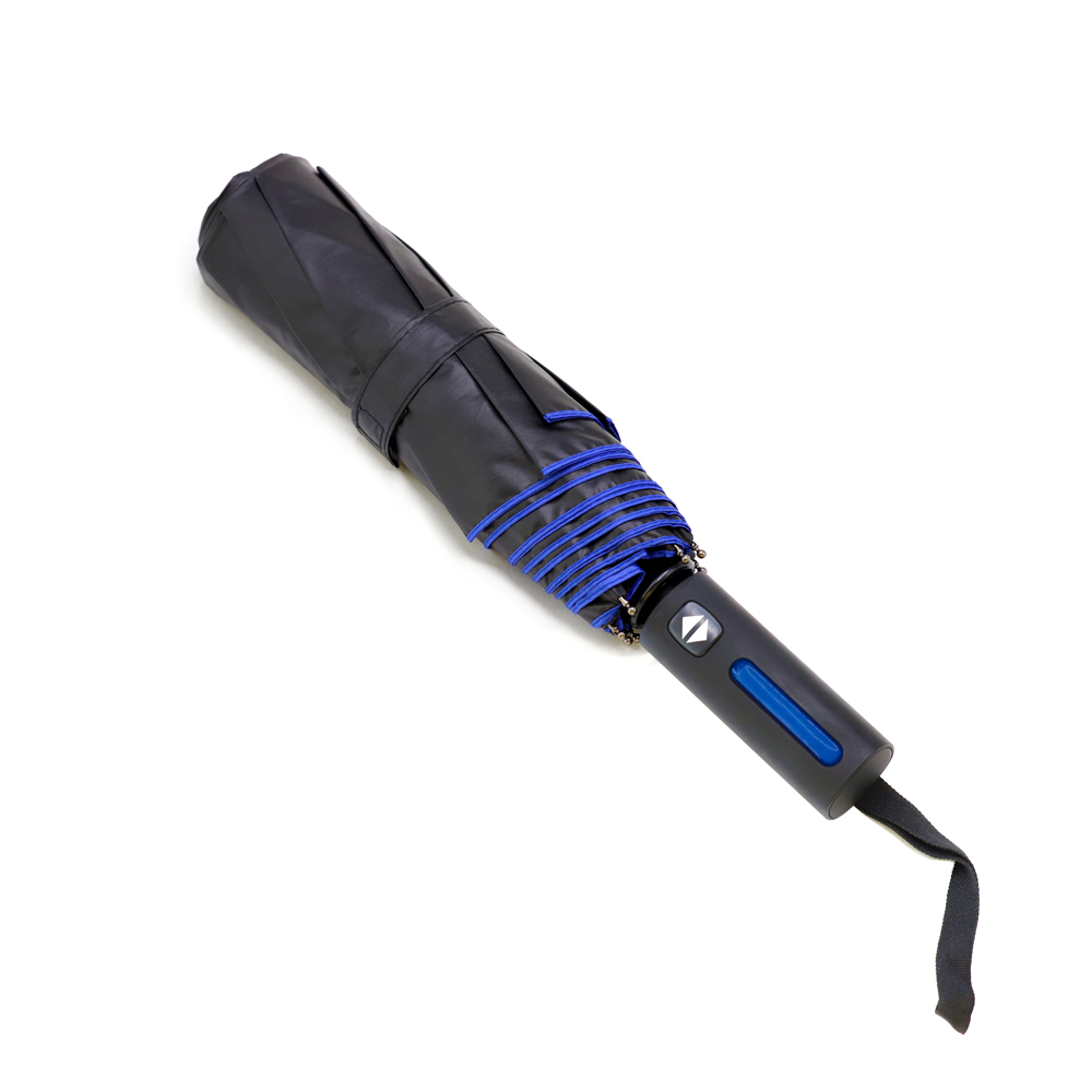 Автоматический противоштормовой складной зонт Sherp. Материал купола – эпонж. На таком материале вода превращается в капельки и скатывается, а сам зонт остается сухим. Цветной элемент на ручке – в тон купола. Ветрозащитная функция – спицы из стекловолокна, а специальное устройство препятствует поломке спиц при резких порывах ветра. Цвет по PANTONE® (максимально приближен): 3590C.