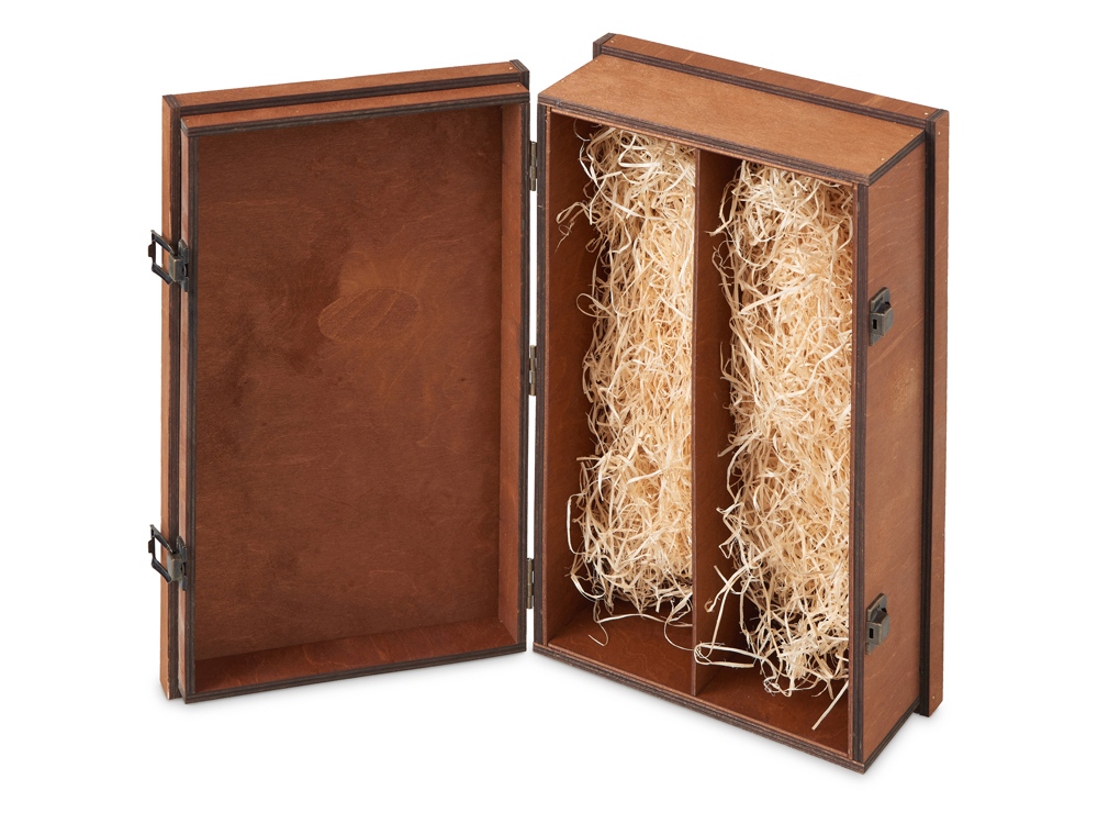 Универсальная деревянная коробка станет превосходным дополнением к вашему подарку. Разработанная для удобного и безопасного размещения двух стандартных бутылок, она обеспечивает не только надежную транспортировку, но и эффектную презентацию. После торжества коробка может служить для хранения или как элемент декора, продолжая радовать своего владельца. - натуральные материалы; - металлические замочки; - стильный дизайн; Гравировка (CO2 лазер) (Без чернения) на данный товар осуществляется бесплатно. Оплачивается только настройка оборудования в размере 1100 рублей на весь тираж.