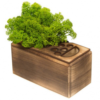 GreenOffice — стильный деревянный органайзер для канцелярских принадлежностей, украшенный настоящим мхом.